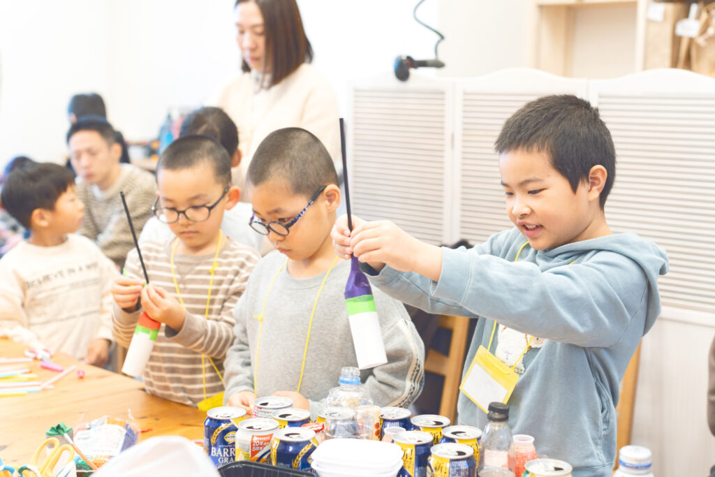 図工パークではどんな考えでも否定せず、こどもの自由なアイデアをどんどん褒めて「上手な作品を作る」ことよりも「制作する過程」を大切にしています。
