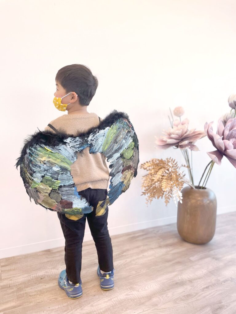 この課題で使用する素材は図工パークの講師がパリで直接選んで持って帰ってきた、実際にパリスコレクションで使われた高級な布なんです!パリコレは年に2回、世界の高級ブランドが新作を発表し、これによってその年のファッションの流行が左右されるのです。そんな豆知識を生徒に伝えて、「流行」ってここから始まっているんだ!と子どもたちは新たな学びを得ます。